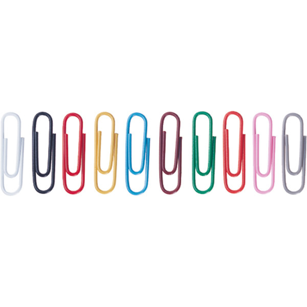 # Agrafe din metal inoxidabil, acoperit cu plastic colorat. # Culori asortate. # Dimensiune: 26 mm.# Ambalare: 300 buc./cutie.