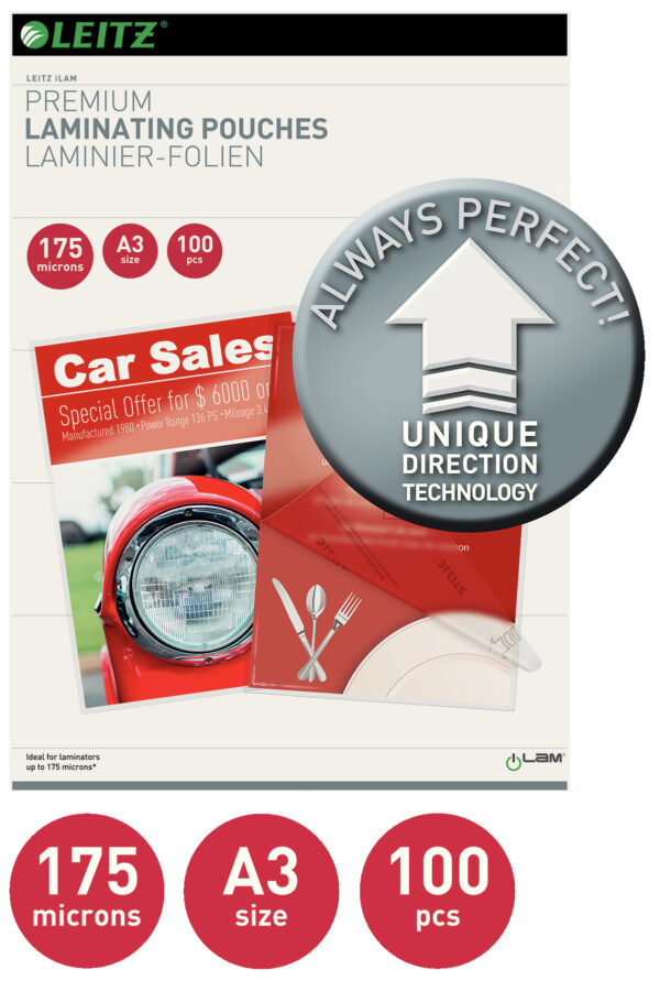 Folie laminare LEITZ UDT, la cald, A3, 175 mic, 100 buc/set
