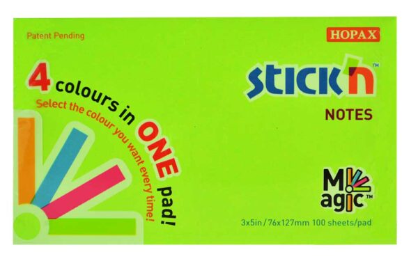Magic notes autoadeziv 76 x 127 mm, 100 file, Stick”n Magic Notes – 4 culori neon