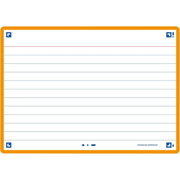 # Oxford Flash Cards este un set de 80 de cartonase pentru notite, concepute pentru a ajuta utilizatorii sa invete si sa-si consolideze cunostintele intr-un mod distractiv si interactiv. # Fiecare set contine 4 pachete de 20 de cartonase, cu dimensiunea de A6 (105 x 148 mm), astfel incat sa fie usor de utilizat si de depozitat. # Ideale pentru a crea liste de cuvinte sau pentru a scrie note si informatii importante. # Aceste cartonase sunt echipate cu Scribzee, o aplicatie mobila gratuita, care le permite utilizatorilor sa scaneze si sa organizeze notitele intr-un mod digital, astfel incat sa fie mai usor sa le acceseze si sa le utilizeze mai tarziu. # Culoare margini: portocaliu.