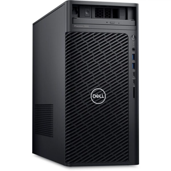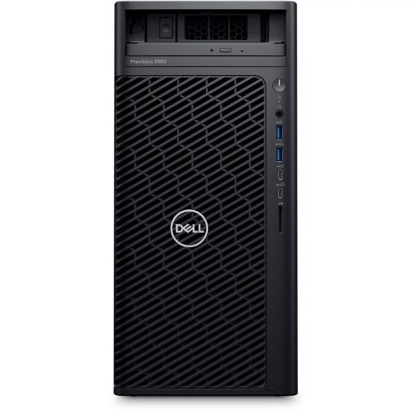 Precision 3680 Tower CTO BASE, 1000W (80 Plus Platinum) PSU , EPEAT 2018 Registered (Gold), ENERGY STAR Qualified, Intel? Core? i9 14th Gen 14900K (36 MB cache, 24 cores, 32 threads, 3.2 GHz to 6.0 GHz, 125W), NVIDIA RTX 5000 Ada Generation, 32GB GDDR6, 4DP, 32GB: 2 x 16 GB, DDR5, 4400 MT/s, non-ECC, 2 TB, M.2 2280, Gen 4 PCIe NVMe, SSD, 8x DVD+/- RW/RAM 9.5mm Slimline Optical Disk Drive, Thermal Pad, Premium CPU Air Cooler with VR Heatsink, Intel Management Engine with vPro, Intel Rapid Storage Technology Driver, External Antenna, , Intel Wi-Fi 6/6E (6GHz) AX211 2×2 Bluetooth 5.3 Wireless Card, WLAN Intel AX211 wireless card driver, Dell Pro Wireless Keyboard and Mouse – KM5221W – US International (QWERTY) – Black, External ports: Network port: 1 x RJ45 (1 GbE) Ethernet port, 1 x RJ45 (2.5 GbE) Ethernet port (optional), USB ports: Front: 1 x USB 3.2 Gen 1 (5 Gbps) port, 1 x USB 3.2 Gen 1 (5 Gbps) port with PowerShare, 1 x USB 3.2 Gen 2 (10 Gbps) Type-C port, 1 x USB 3.2 Gen 2×2 (20 Gbps) Type-C port with PowerShare, Rear: 2 x USB 2.0 (480 Mbps) ports with SmartPower, 2 x USB 3.2 Gen 2 (10 Gbps) ports, 2 x USB 3.2 Gen 2 (10 Gbps) Type-C ports, Audio port: Front: 1 x Universal Audio port, Rear: 1 x Audio line-out, Video port(s): 2 x DisplayPort 1.4a HBR2 ports, 1 x Optional Port (VGA, HDMI 2.0, DP++ 1.4a HBR3, USB 3.2 Gen 2 (10 Gbps) Type-C with DP-Alt mode), Media-card reader: 1 x SD-card slot, Power-adapter port: N/A, Security-cable slot: 1 x Kensington security-cable slot, Internal slots: M.2: 1 x M.2 2230 slot for WiFi and Bluetooth card, 2 x M.2 2230/2280 slots (SSD0 and SSD1) for SSD, 1 x M.2 2280 slot (SSD2) for SSD, Height: 372.90 mm (14.68 in.), Width: 173.00 mm (6.81 in.), Depth: 420.20 mm (16.54 in.), Weight: Maximum – 16.05 kg (35.38 lb), Minimum – 7.58 kg (16.71 lb), Windows 11 Pro, English, Dutch, French, German, Italian, 3y ProSupport and Next Business Day Onsite Service
