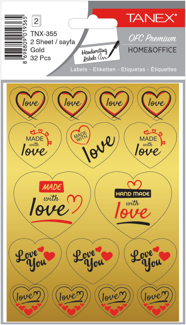 Stickere decorative, 2 file/set, TANEX Kids – inimi – aurii, TNX 355