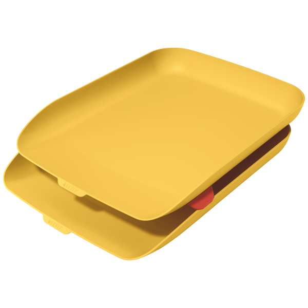 # Simtiti-va ca acasa oriunde va duce ziua de lucru cu gama Cosy de la Leitz. Cu designul sau minimalist si culorile mate imbietoare, puteti adauga stil si culoare spatiului dvs. de lucru. # Potrivit pentru hartie de format de pana la A4, tavita Cosy pastreaza documentele importante organizate si la indemana. # Acest produs premium este completarea perfecta pentru casa sau biroul dvs. pentru a va asigura ca ramaneti relaxat si productiv toata ziua. # Potrivit pentru depozitarea documentelor, revistelor si dosarelor in format A4 si C4 atat in format folio cat si in format scrisoare # Organizare simpla datorita modului de depozitare a tavitelor, una peste cealalta, in trepte utilizand coltul elegant inclus, intr-o culoare rosie accentuata (tavite suplimentare disponibile pentru achizitie separata, stivuiti pana la 3 tavite) # Deschiderea frontala larga asigura accesul cu usurinta a continutului chiar si atunci cand sunt stivuite # Material: Polistiren (PS). # Dimensiuni: 274 x 81 x 407 mm. # Ambalare: 2 buc/set. # Culoare: galben chihlimbar.
